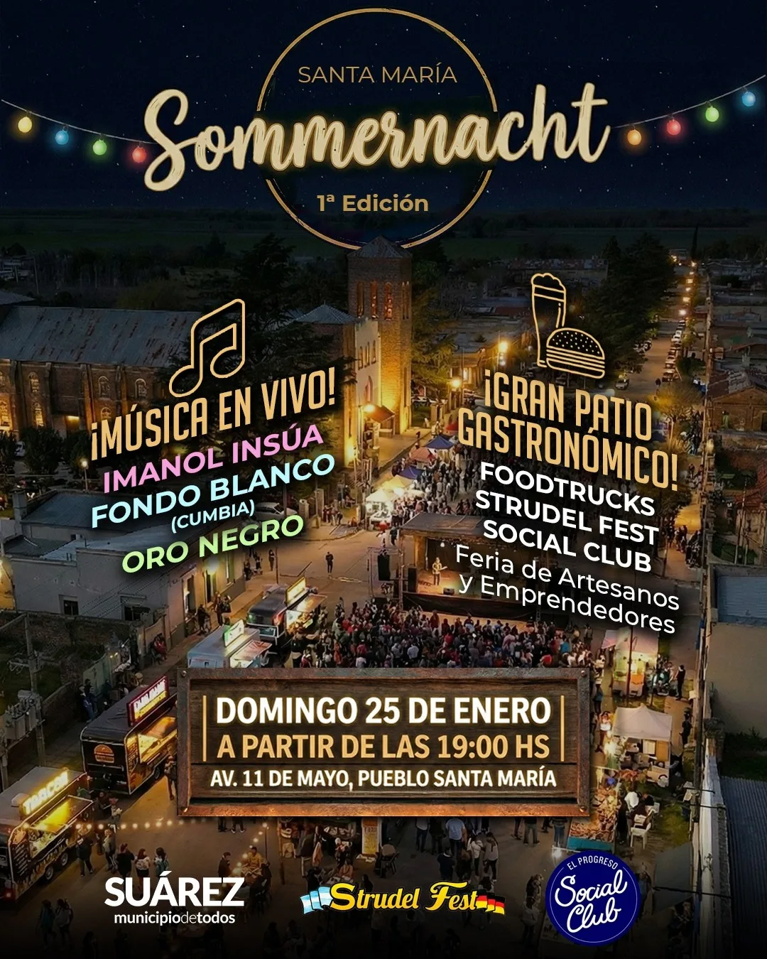 🌜🎉Este domingo, Santa María vivirá la primera edición de “Sommernacht” (Noche de Verano), una fiesta peatonal pensada para disfrutar en familia y con amigos.
